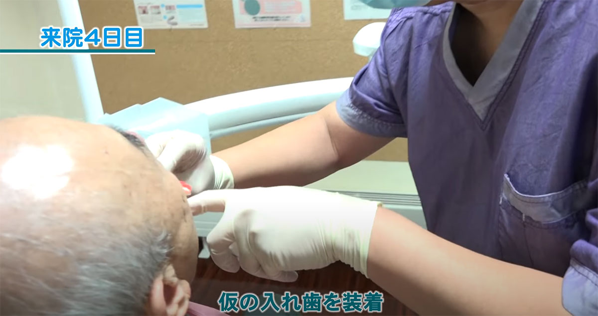 仮の入れ歯を装着します。